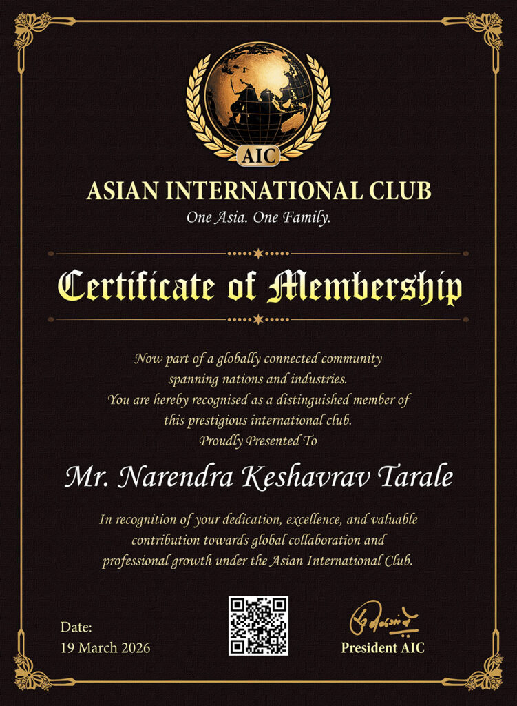The Asian International Club – Recognition is a distinguished honour conferred upon individuals who are successfully enrolled as members of the Asian International Club. This recognition represents credibility, achievement and inclusion in a trusted Pan-Asian network of accomplished professionals and leaders.